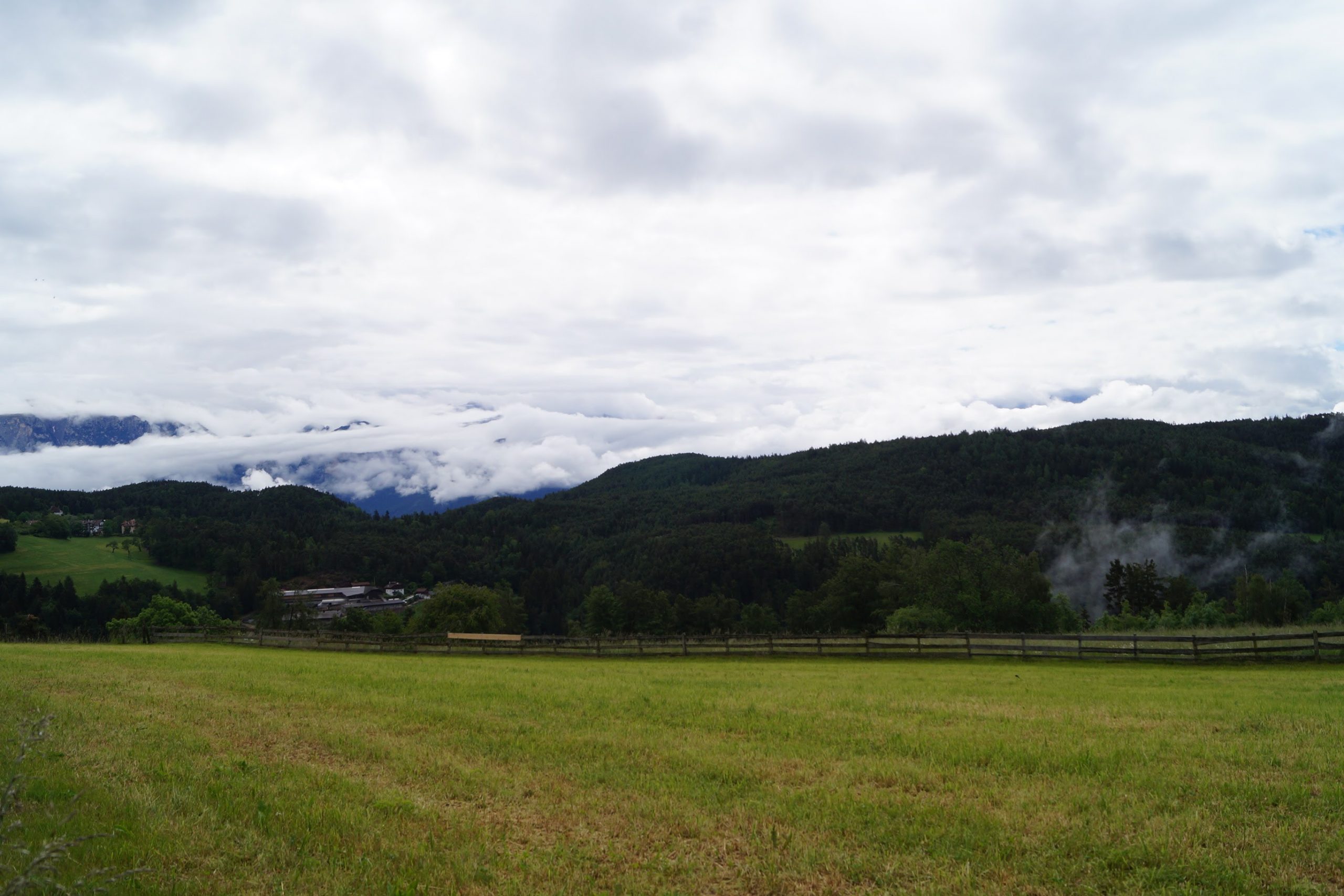 Ebenso wandern wir in den Bergen. Mit der Seilbahn in Burgstall-Vöran, geht es rauf zum Knottnkino. Das Knottnkino, auch Knottenkino, ist ein besonders gestalteter Aussichtspunkt auf dem Porphyrfelsen Rotsteinkogel in 1465 m s.l.m. bei dem Südtiroler Ort Vöran über Burgstall. „Knottn“ bedeutet im Südtiroler Dialekt „Fels“. Ein herrlicher Ausblick!