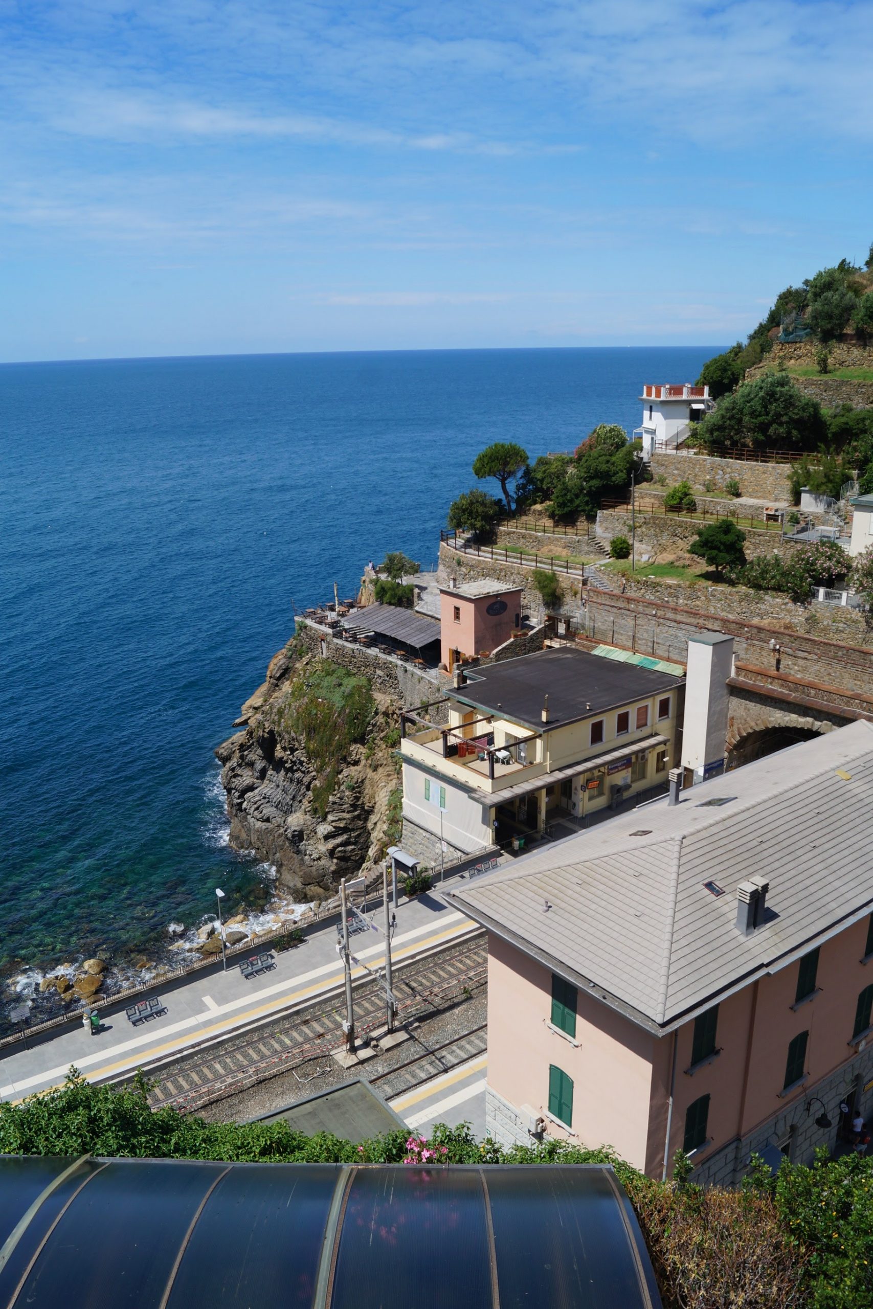 Aber wir waren ja nicht hier hingekommen, um uns kulinarisch volllaufen zu lassen, sondern die Gegend zu erkunden. So kamen wir zum Beispiel hierher: Entlang der Küste erstreckt sich eine mehrere hundert Meter hohe, zum Teil steil ins Meer abfallende, sanft gerundete Bergkette. Die Cinque Terre bestehen aus fünf kleinen, abschüssigen Geländeeinschnitten, die sich zum Meer hin öffnen. In den Tälern liegt je eines der Dörfer. Vier der fünf Ortschaften liegen unmittelbar am Wasser. Lediglich Corniglia liegt auf einem Felsvorsprung rund 100 Meter über dem Meer, daher haben wir nur vier Dörfer besucht, Monterosso al Mare, Vernazza, Manarola und Riomaggiore. Mit der Bahn kommt man von Sestri Levante in gut 50 Min. nach Riomaggiore. Herrlich kleine Ortschaften mit malerischem Blick auf das Meer, aber auch vom Meer in die Gemeinde!