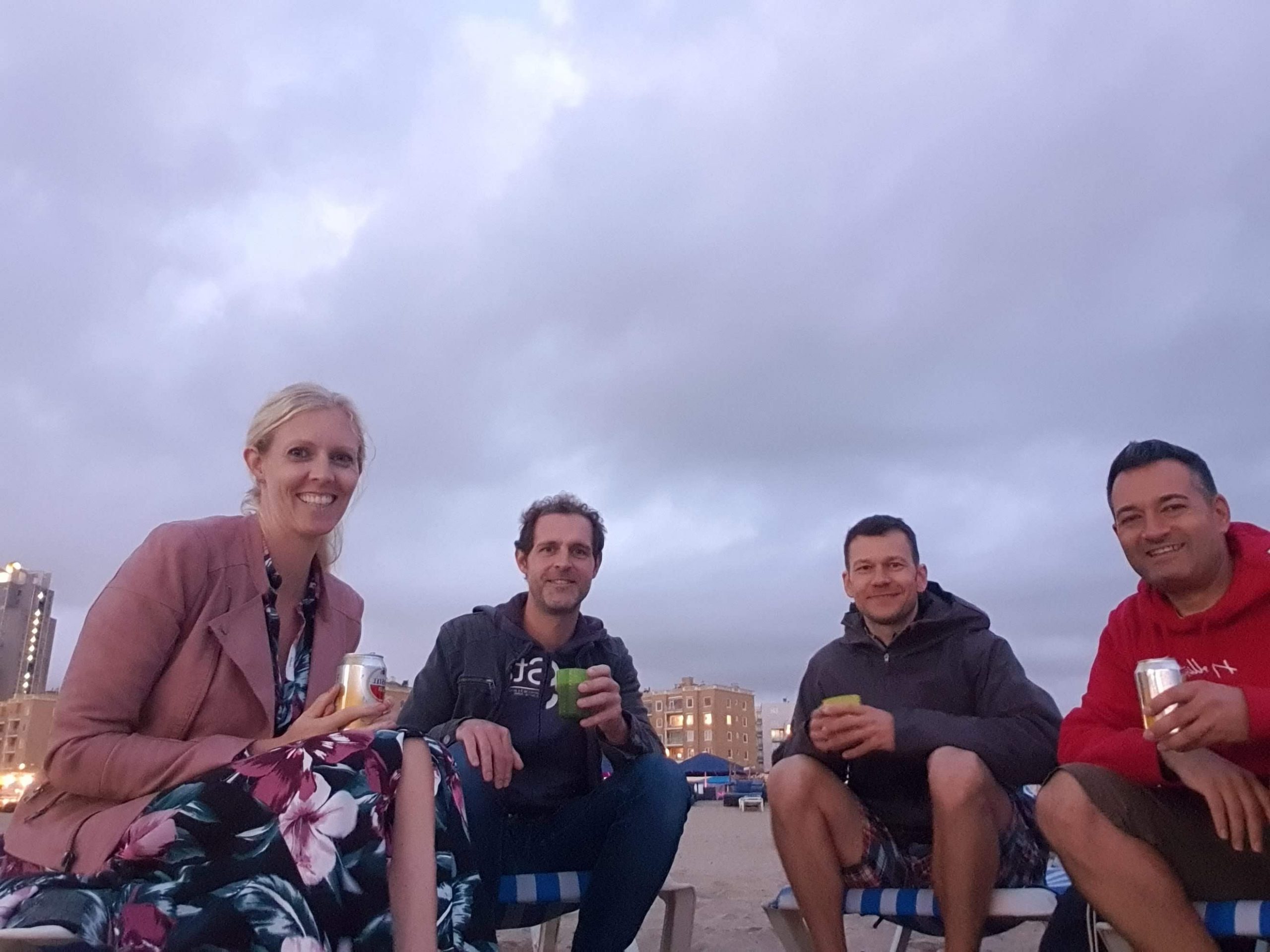 Die Strandpromenade von Scheveningen ist auf Party eingestellt. Der Strand ist mit Bars und Restaurants zu gepflastert, sodass die Buden und Hütten den Blick auf das Meer verwehren. Am Tag ist das kein schöner Anblick, wenn es dunkel ist, fügt sich alles zu einem schöneren Bild zusammen.