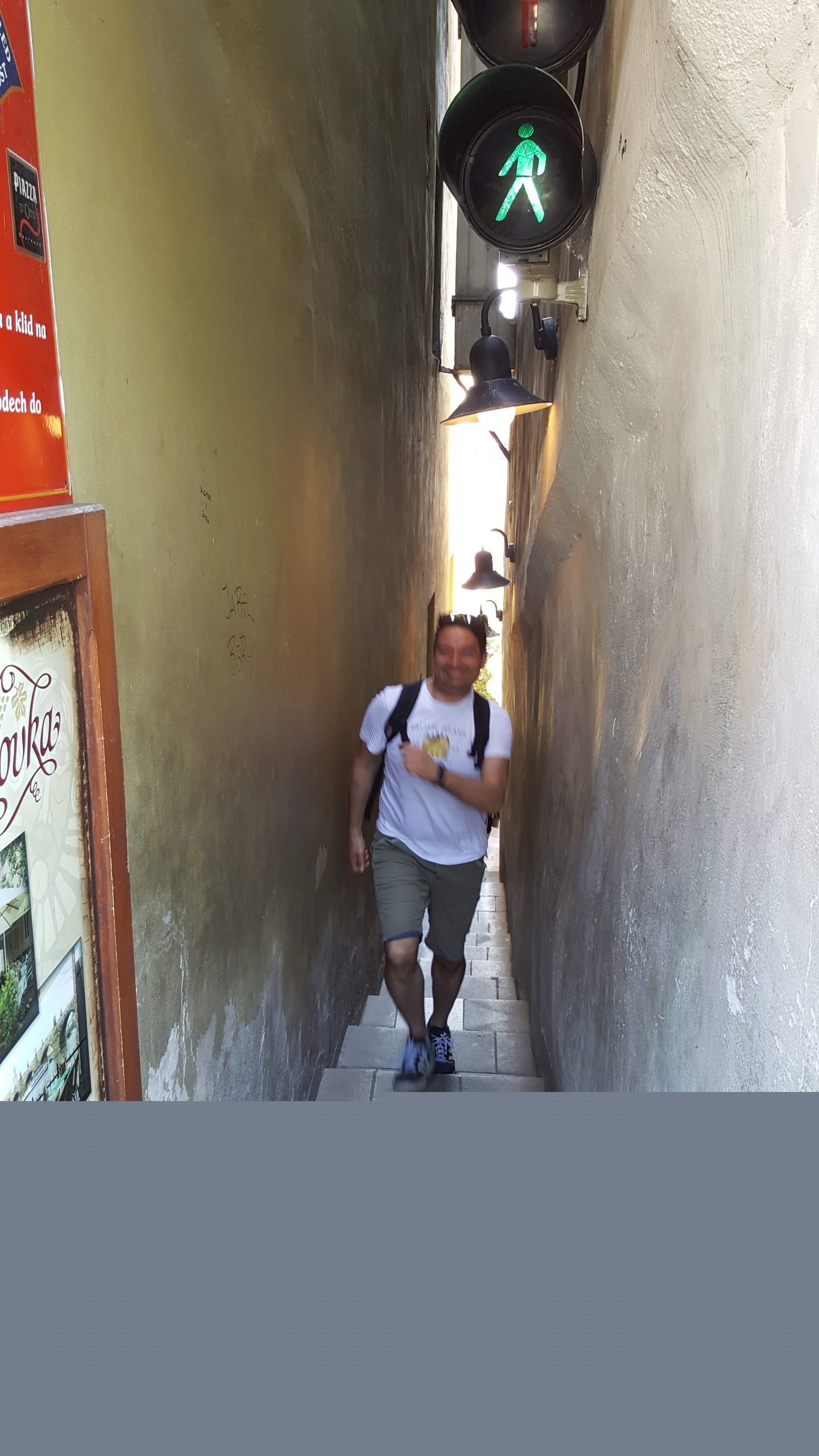 Die engste Straße in Prag heißt „Vinarna Certovka“ und ist auch als „Certovka Gasse“ (Teufelsgasse) bekannt. Sie liegt im Stadtteil Malá Strana (Kleinseite) und gleicht mehr einem schmalen Durchgang als einer richtigen Straße. Da sie so eng ist, gibt es sogar eine Fußgängerampel. Man kann immer nur in eine Richtung laufen. Ich bin eindeutig eine Gefahr für den Fußgängerverkehr! 😂