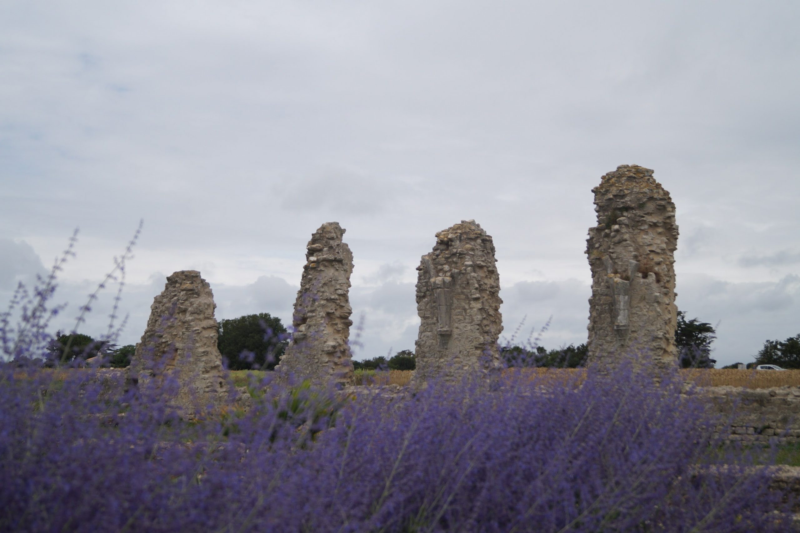 Weiter ging die Tour nach La Flotte. Endlich haben wir auch wieder die Situation, wir kommen an einen Ort mit Markt … der gerade abgebaut wird. Vorbeikommen wir noch an dieser Ruine einer ehemaligen Klosteranlage Notre-Dame-de-Ré. Der Rosengarten steht noch in voller Blüte.