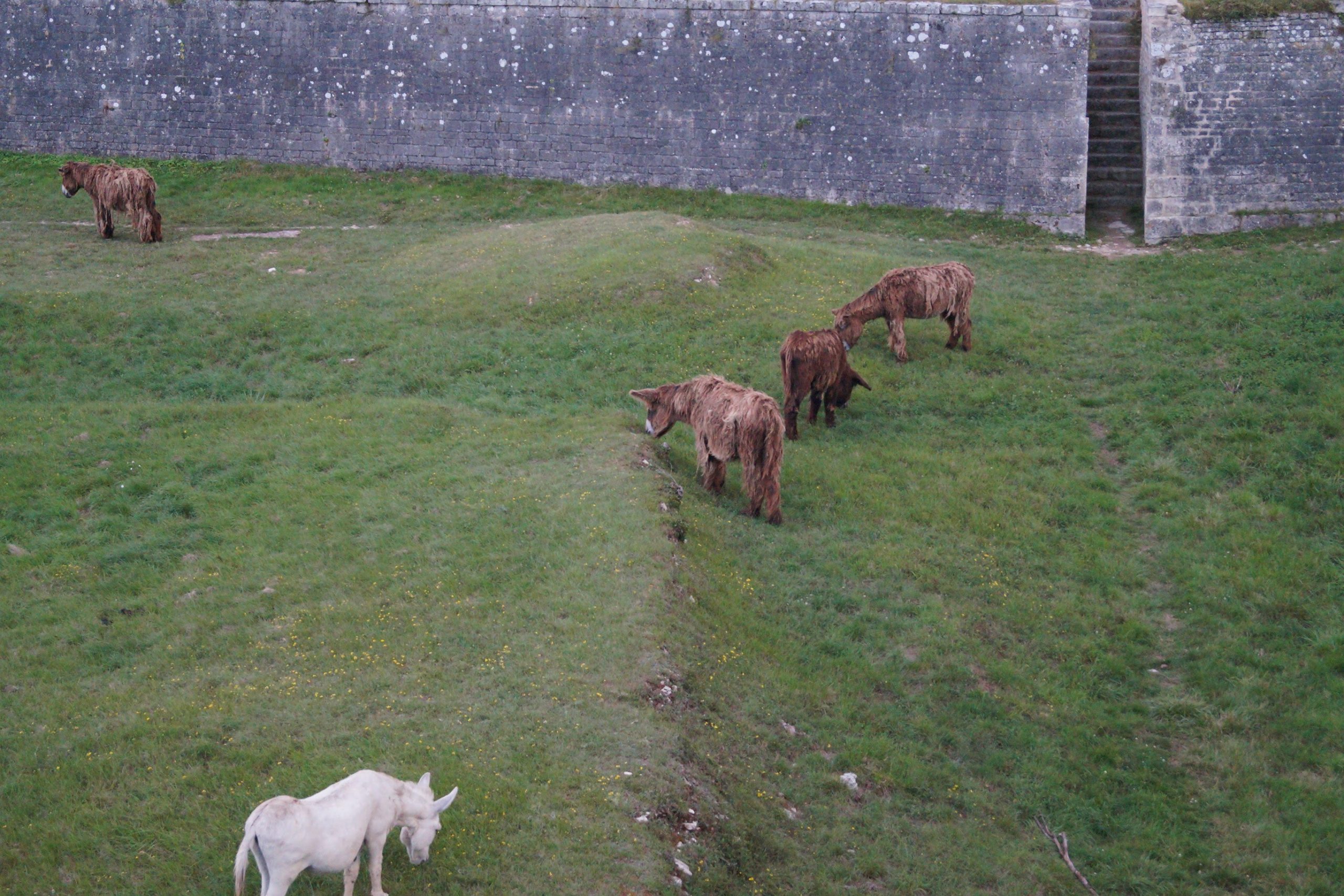 Unseren Campingplatz haben wir am Hauptort Saint-Martin-de-Ré gebucht und bleiben hier vier Nächte stehen. Dieser Platz wird begrenzt durch eine alte Anlage, in der sich im Anlagengraben frei laufende Esel, verschiedener Rassen, bewegen.