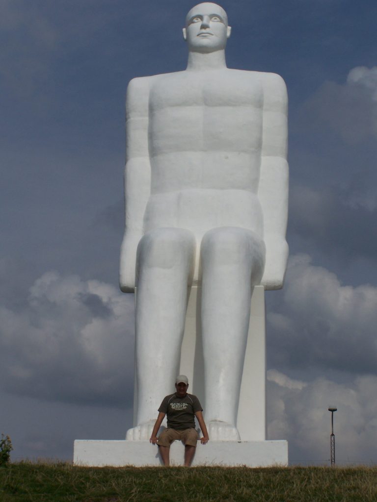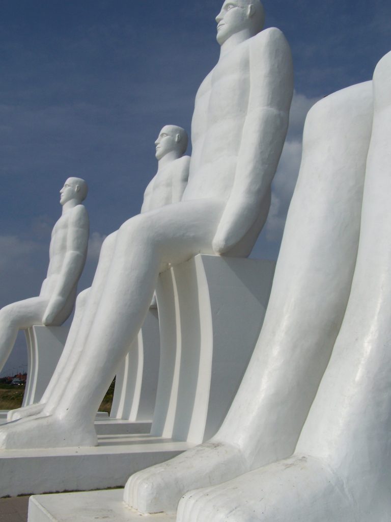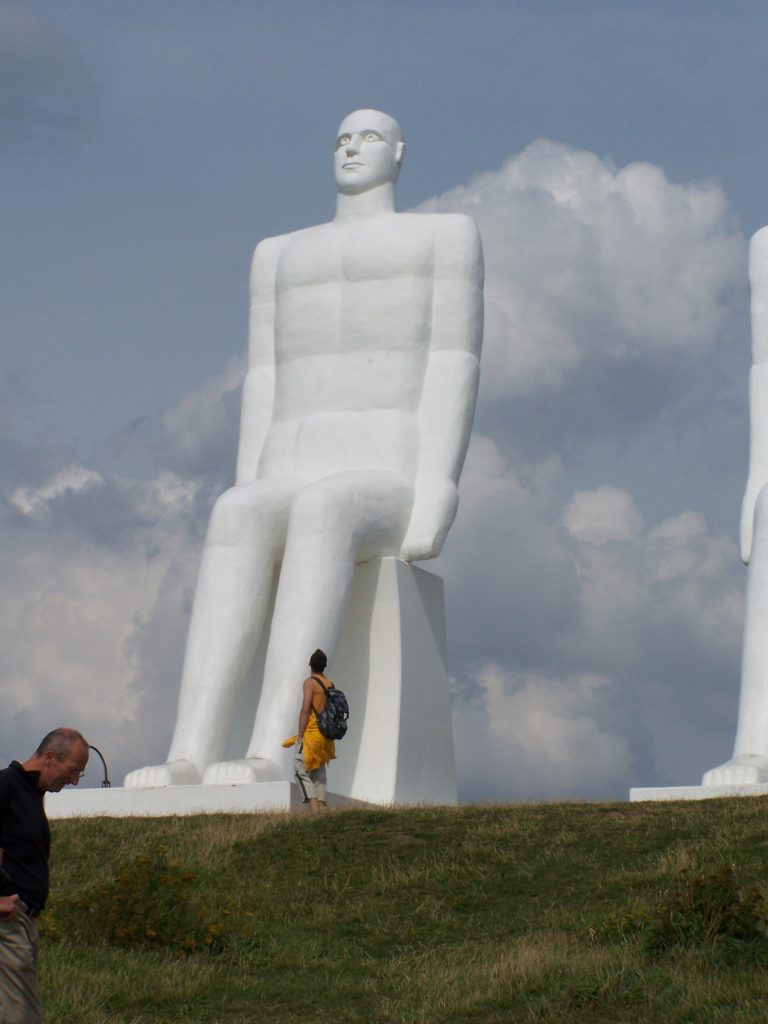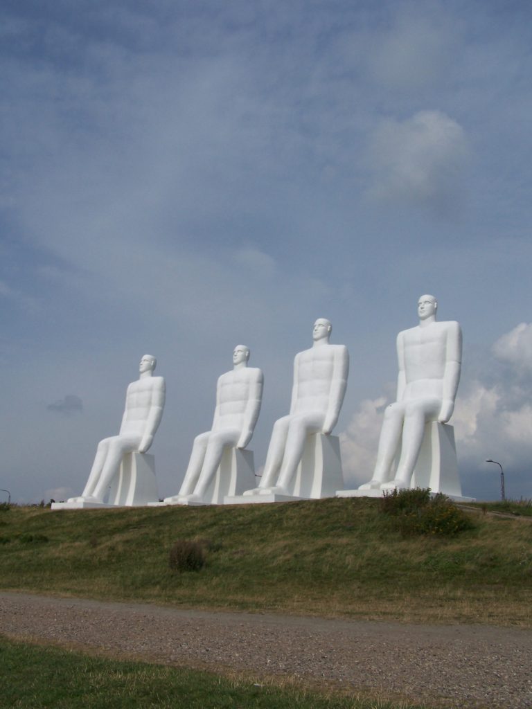 In der NĂ€he hatten wir eine schöne SehenswĂŒrdigkeit: „Mennesket ved havet“ bei Esbjerg. Der Mann am Meer, umgangssprachlich oft auch die 4 weiĂen MĂ€nner genannt, ist eine 9 Meter hohe Skulptur aus weiĂem Beton des Bildhauers Svend Wiig Hansen. Gigantisch davor zustehen.