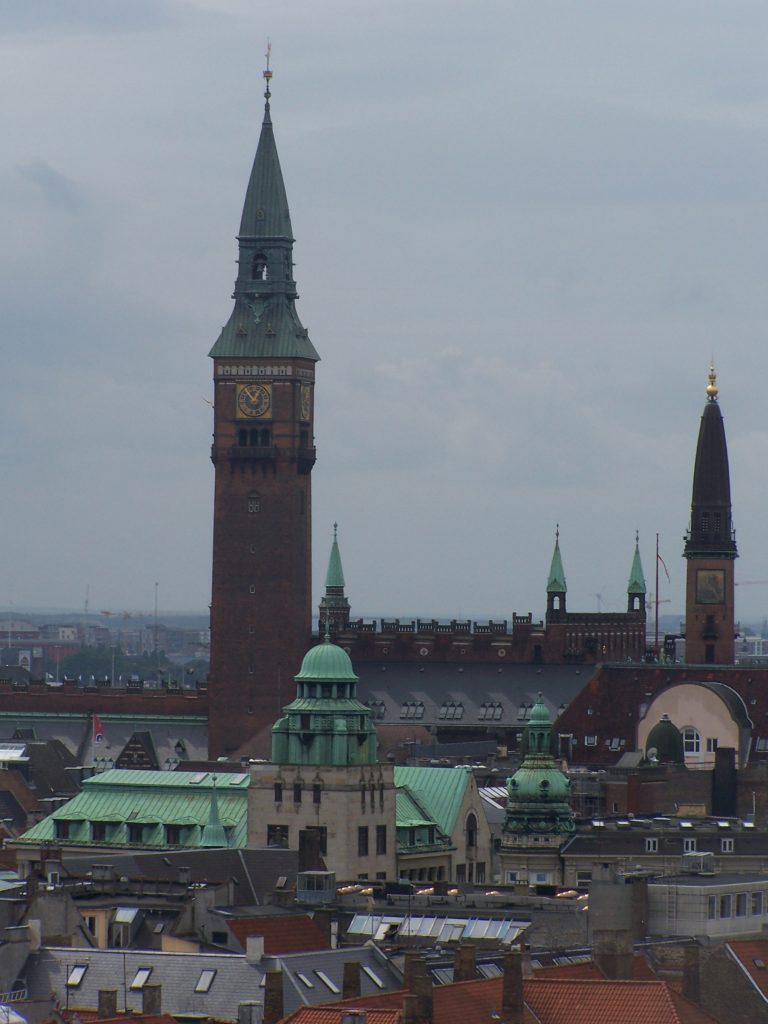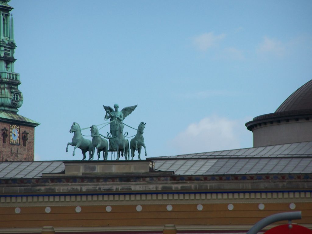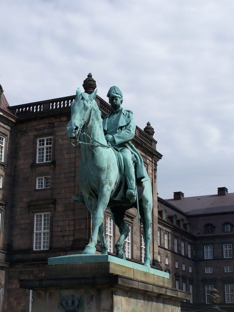 Im Hintergrund die historische Kopenhagener Bibliothek, die 2024 bei Renovierungsarbeiten in Flammen aufging: