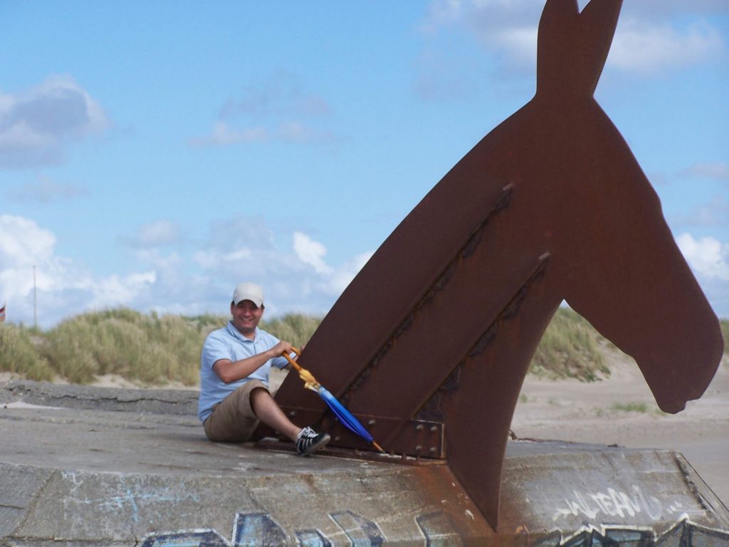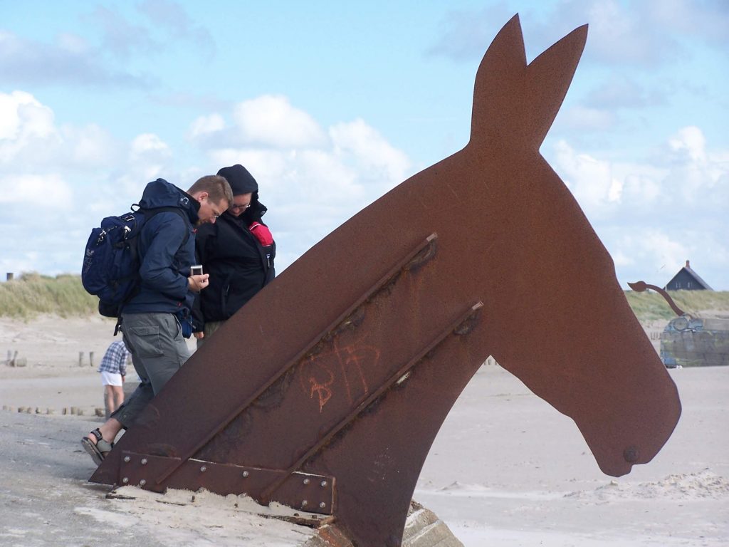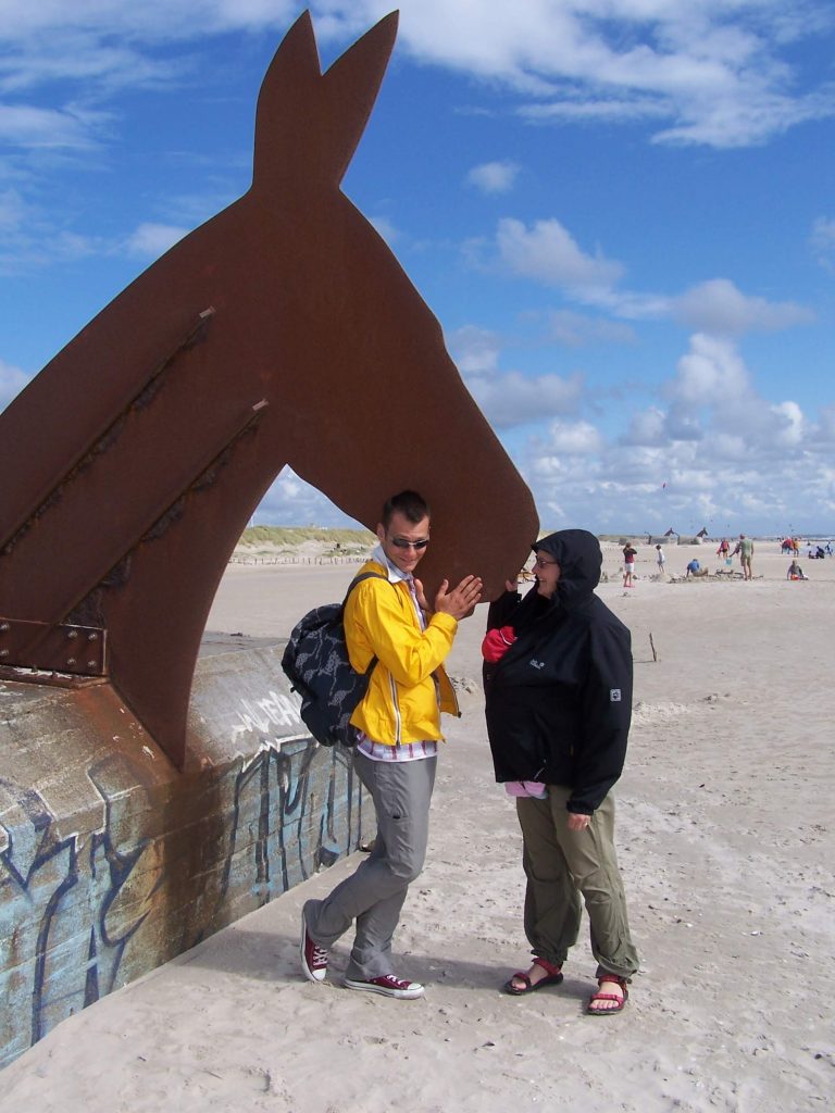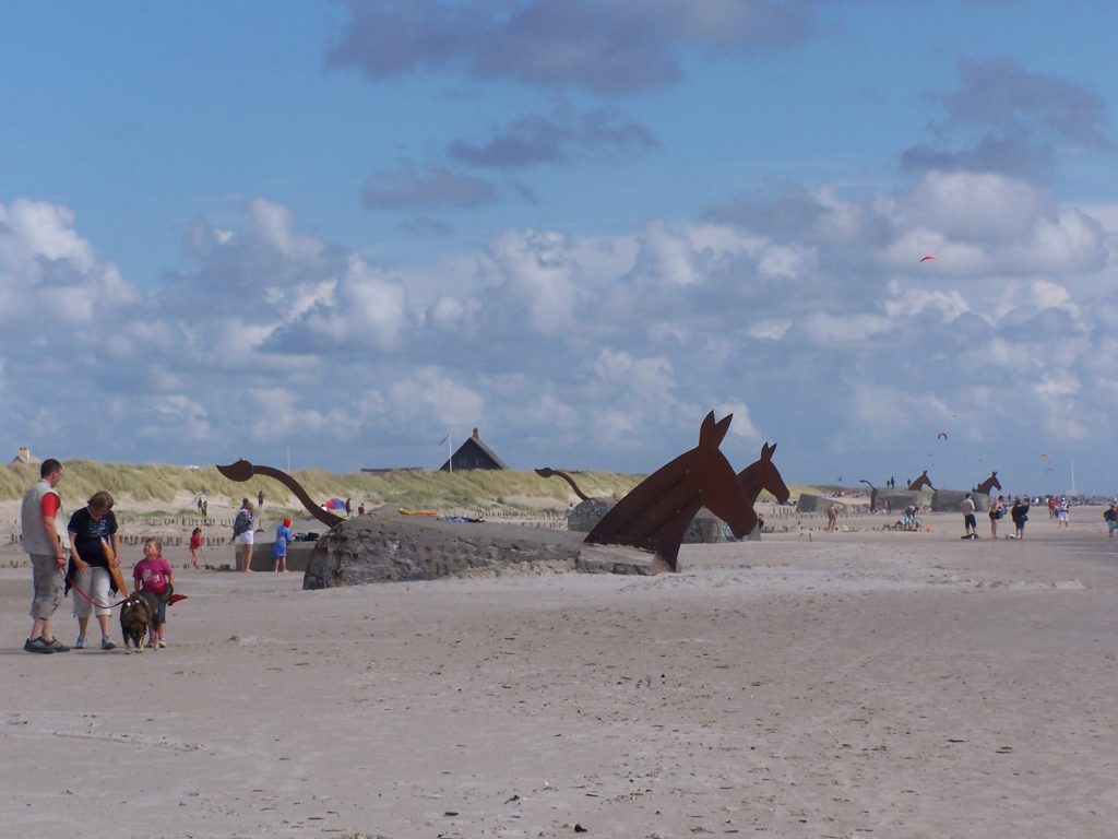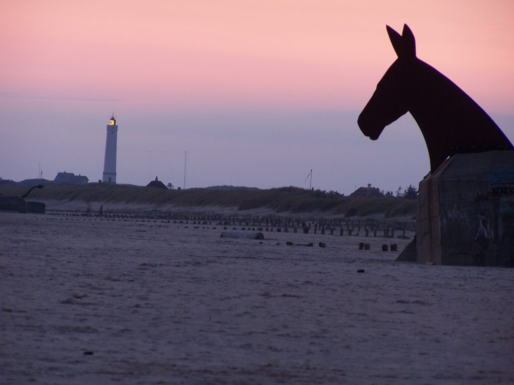 Wir haben auch den Strand und die DĂŒnen besucht. Entlang der Atlantik- und NordseekĂŒste gibt es noch eine Reihe von Bunkern, die auf dem Atlantikwall aus dem Zweiten Weltkrieg stehen. Hier in BlĂ„vand wurden anlĂ€sslich des 50. Jahrestages der Befreiung am 5. Mai vier Maultierbunker am Strand aufgestellt. Da Maultiere sich nicht fortpflanzen können, symbolisieren sie den Frieden. Von Bill Woodrow entworfen und gestaltet. Empfehlenswert ist ein Besuch der Bunker auch in den Abendstunden!