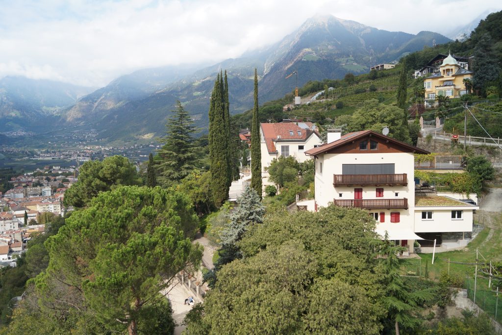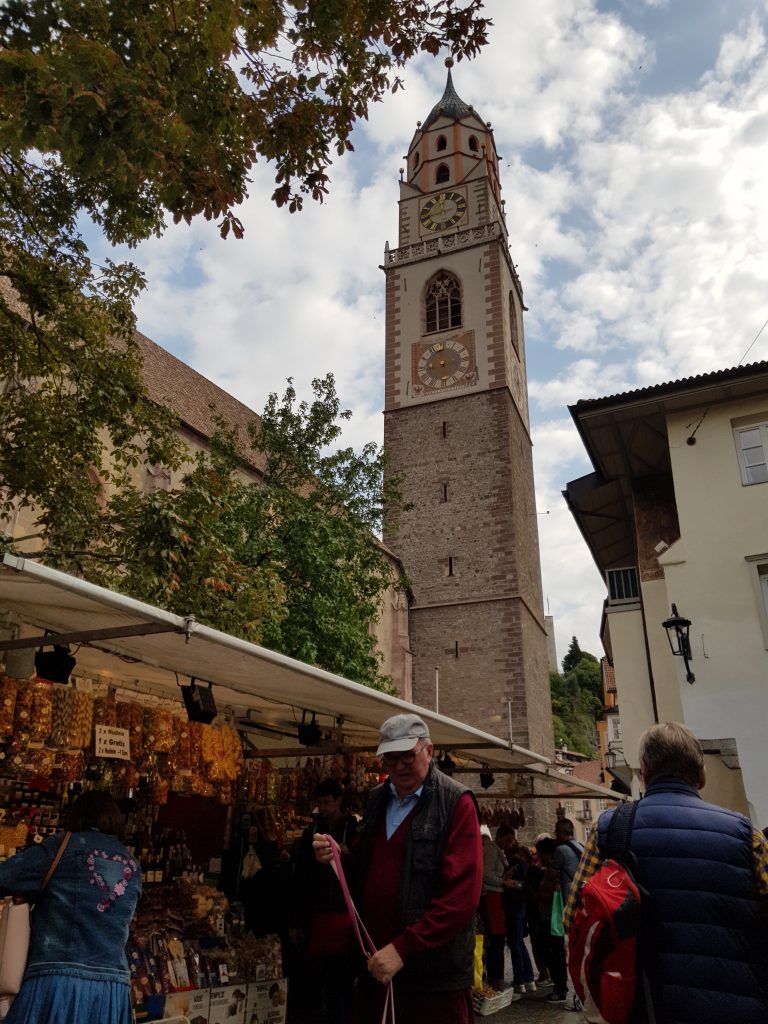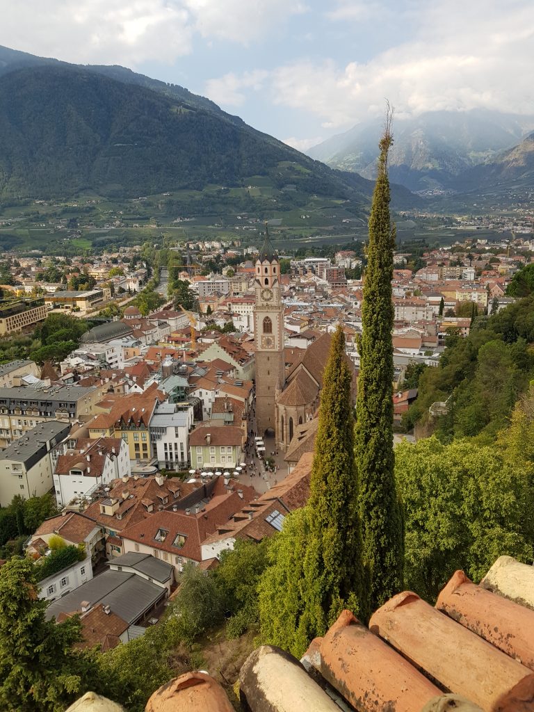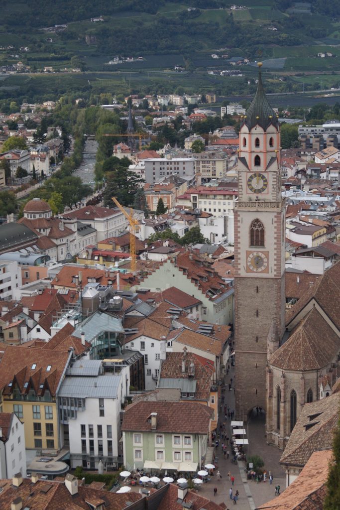 Mit der Bahn fahren wir von Kastelbell mit dem Zug nach Meran und werden uns dort ein wenig umschauen. Immer wieder schön ist das treiben in den Straßen. Von einer Anhöhe haben wir einen herrlichen Blick über die Stadt.