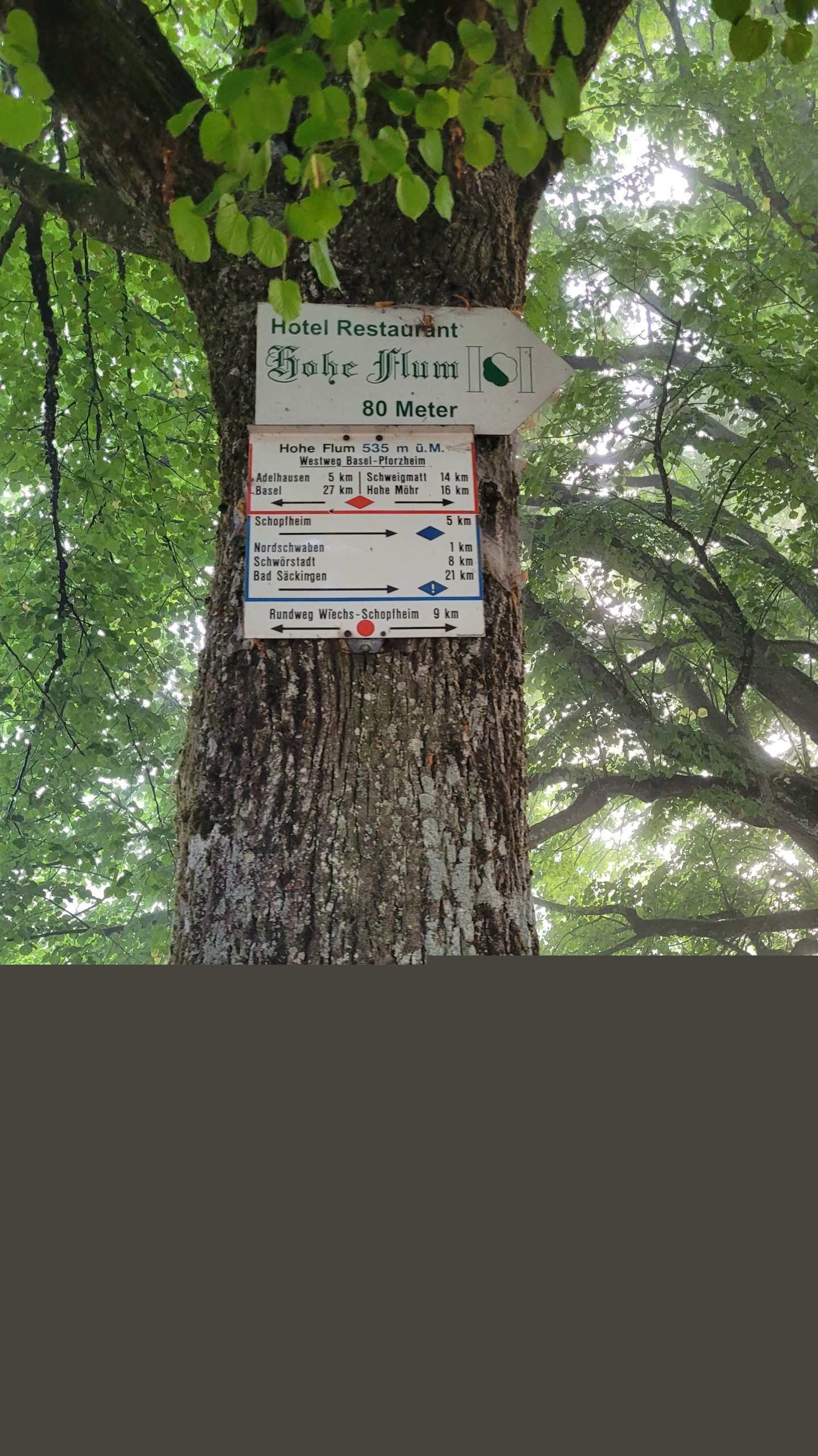 Der oder die Hohe Flum ist mit 536,4 m ü. NHN die höchste Erhebung des Gebirgszugs Dinkelberg. Er liegt zwischen den Ortschaften Wiechs und Nordschwaben im baden-württembergischen Landkreis Lörrach. Auf dem Berg steht der Aussichtsturm Hohe Flum. Den Turm kann man kostenfrei besteigen und mit viel Glück ist man hier auch alleine für sich. 😂