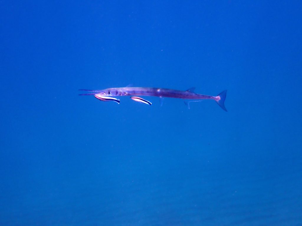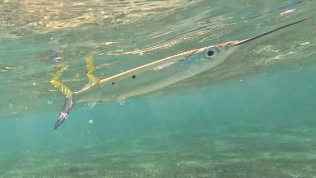 Krokodil-Hornhecht bei der Putzstation